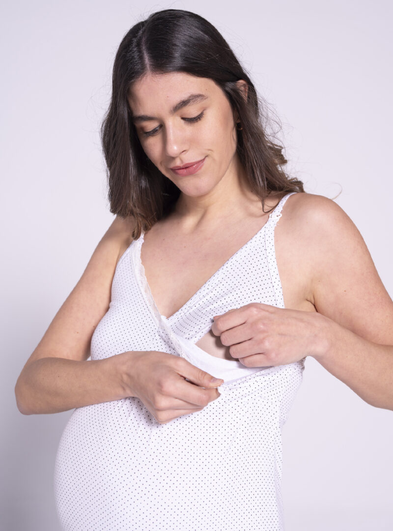 Camison lactancia tirantes lunares con detalles de blonda