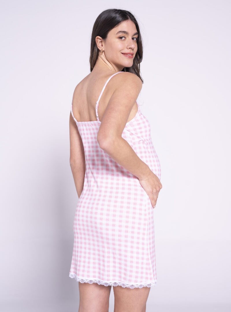 Camisón de tirantes con print vichy y detalles de encaje
