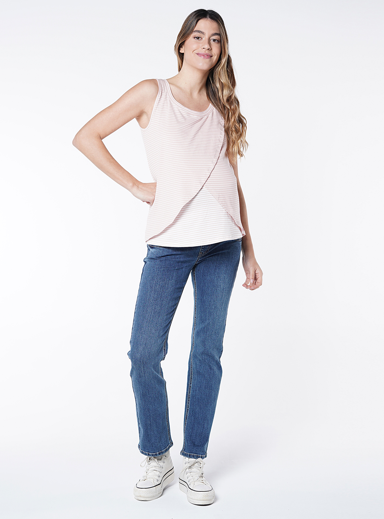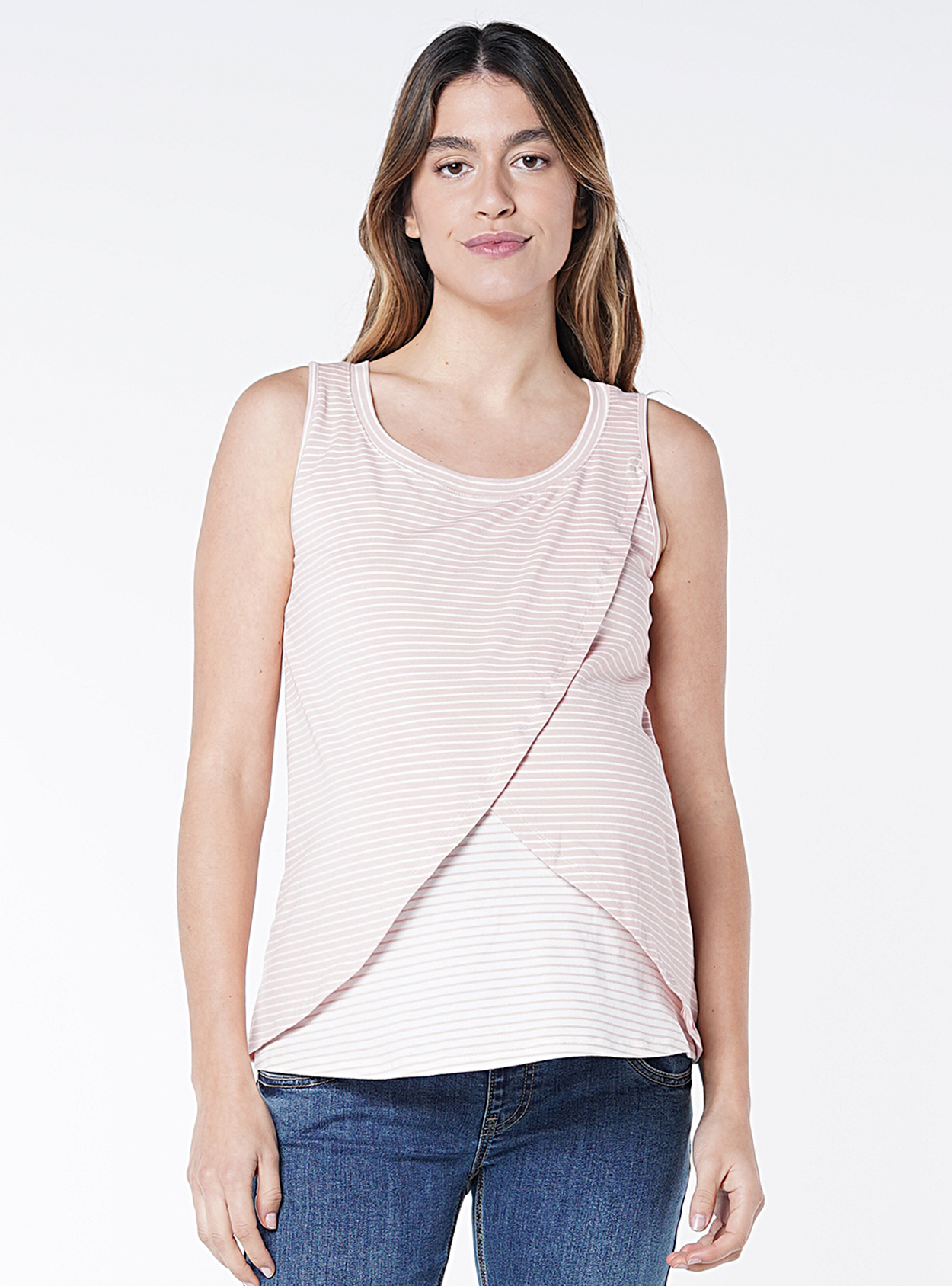 Camiseta lactancia sin mangas rayada y cruzada